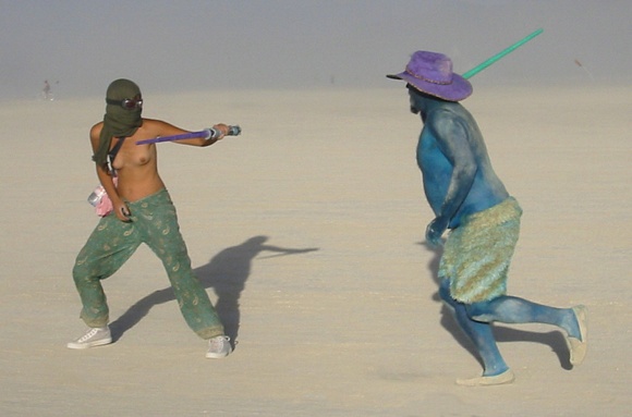 Sword fight in a dust storm.